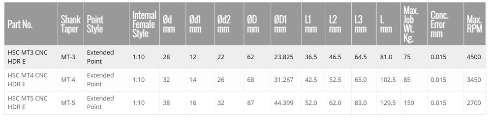 The Turnmax CNC Heavy Duty R-Model with Interchangeable Extended Point is a high-precision revolving center designed for CNC and high-speed turning applications, especially where deep reach and extended workpiece support are required. It combines heavy-duty construction with an interchangeable extended point system for enhanced flexibility and productivity.