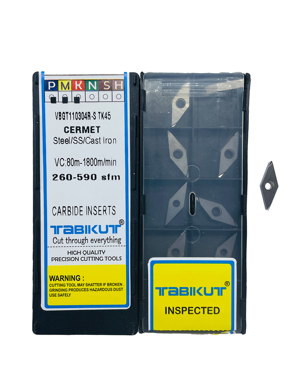 General purpose cermet with superior wear resistance and toughness for steel and stainless steel finishing.Tabikut is known as a leading manufacturer of cermets. Cermet is a composite material combining Ceramic and Metal. Typical materials used in cermets are TiC, TiN, TiCN and NbC. Designed to provide long tool life and excellent surface finishes, cermets combine toughness with superior wear resistance."