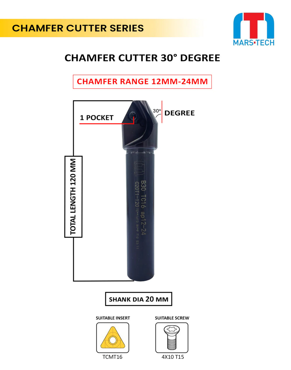 CHAMFER CUTTER AFM30-TC16-C20-Z1-DIA 5 TO 16