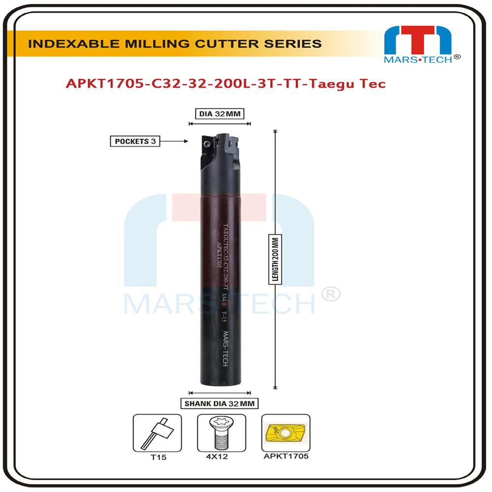This is Shoulder and Face Milling Cutter used mainly in CNC Milling and Manual Milling Machine with ISO Carbide Insert, Using this can reduce the cost really low compared to HSS and changing of insert time is also very low, They are hardened 45-50 HRC to not wear out, Pockets are well designed so insert and pocket seat have no gap in them, Run out tolerance is maintained by grinding by center to center. They have a centre hole on both sides. You can use APKT1705 for the Taegu Tec Brand. Could you insert it into this? If any other brand has the same insert, it can also be fixed to this.